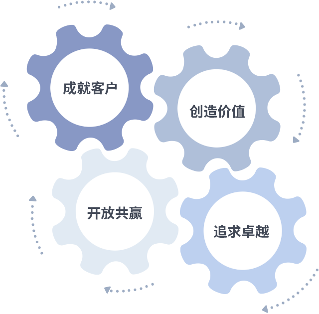 成就客户是一切决策的出发点,创造价值是衡量所有工作的标准,追求卓越是z6尊龙时凯做事做人的态度,开放共赢是z6尊龙时凯的格局也是最终的结果。价值观的齿轮环环相扣,推动着组织里的每个人不断向前。
